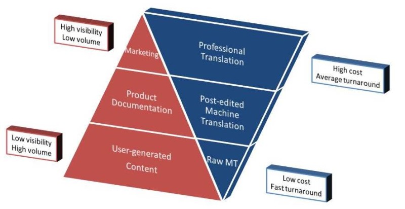 The rapid increase in published content we call the “information explosion” has not been accompanied by a corresponding “budget explosion.” Global marketers are expected to get the message out to an ever-increasing number of locales even as budgets decrease. When tasked with getting more for less, global marketers are taking a closer look at how best to translate their diverse content. Increasingly, machine translation (MT) is being used as the ideal means to translate certain types of content.
