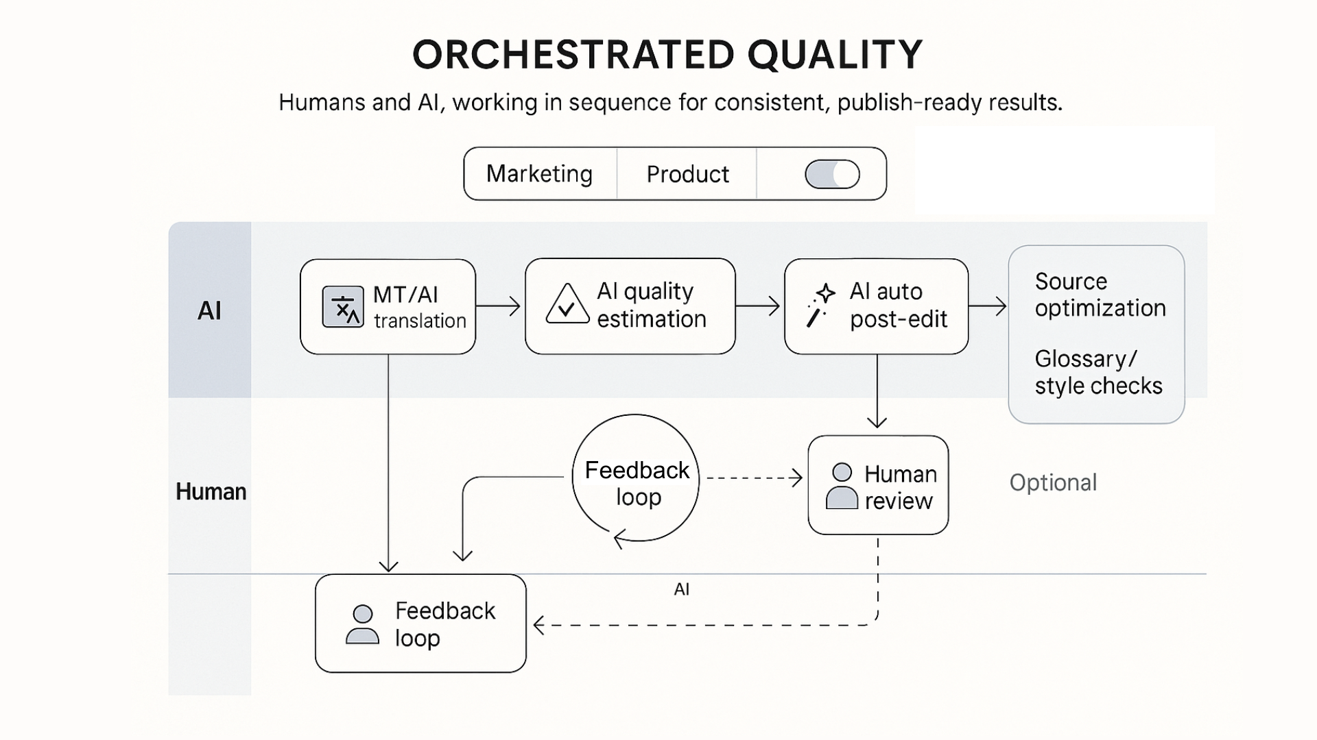 - Even the best linguists are human. Without automated checks and gates, errors can slip through, creating legal, financial, or brand risk. And no two humans are alike, so even when quality is good, consistency is difficult to maintain at scale.